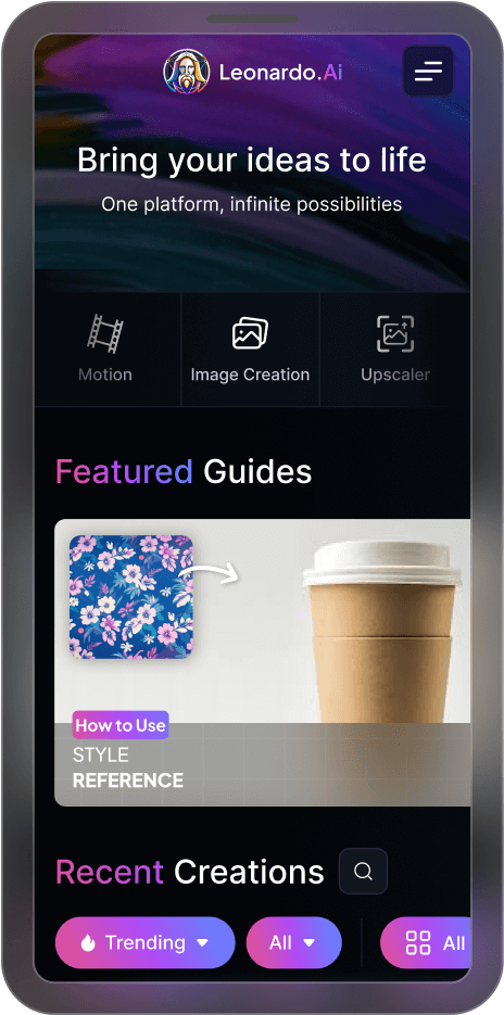 Take creativity a step further with the transformative power of our AI Image Generation tool. It’s not just about bringing your concepts to life — redefine the impossible. From beginners to professionals, we offer a spectrum of settings that can be intuitively tailored to your needs.